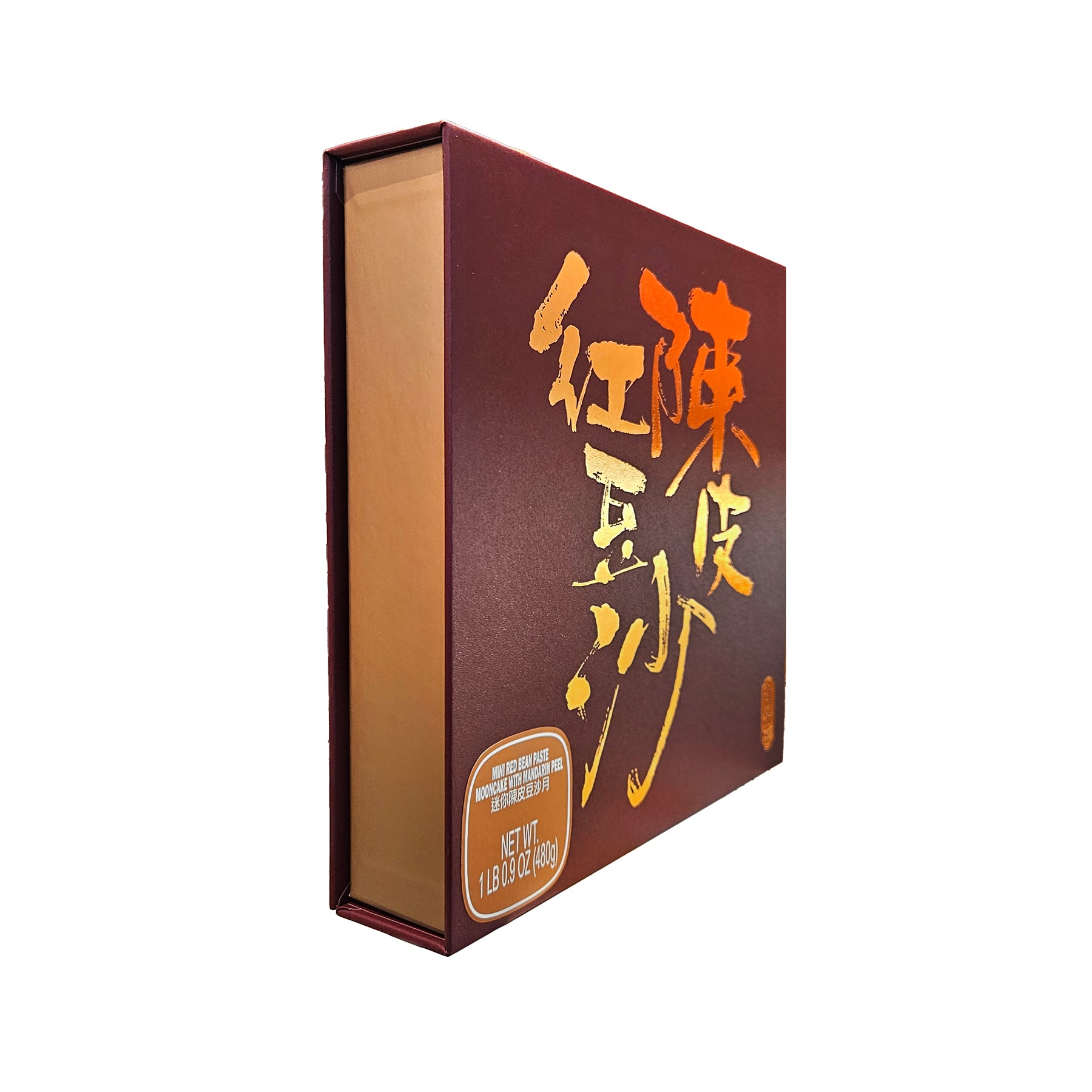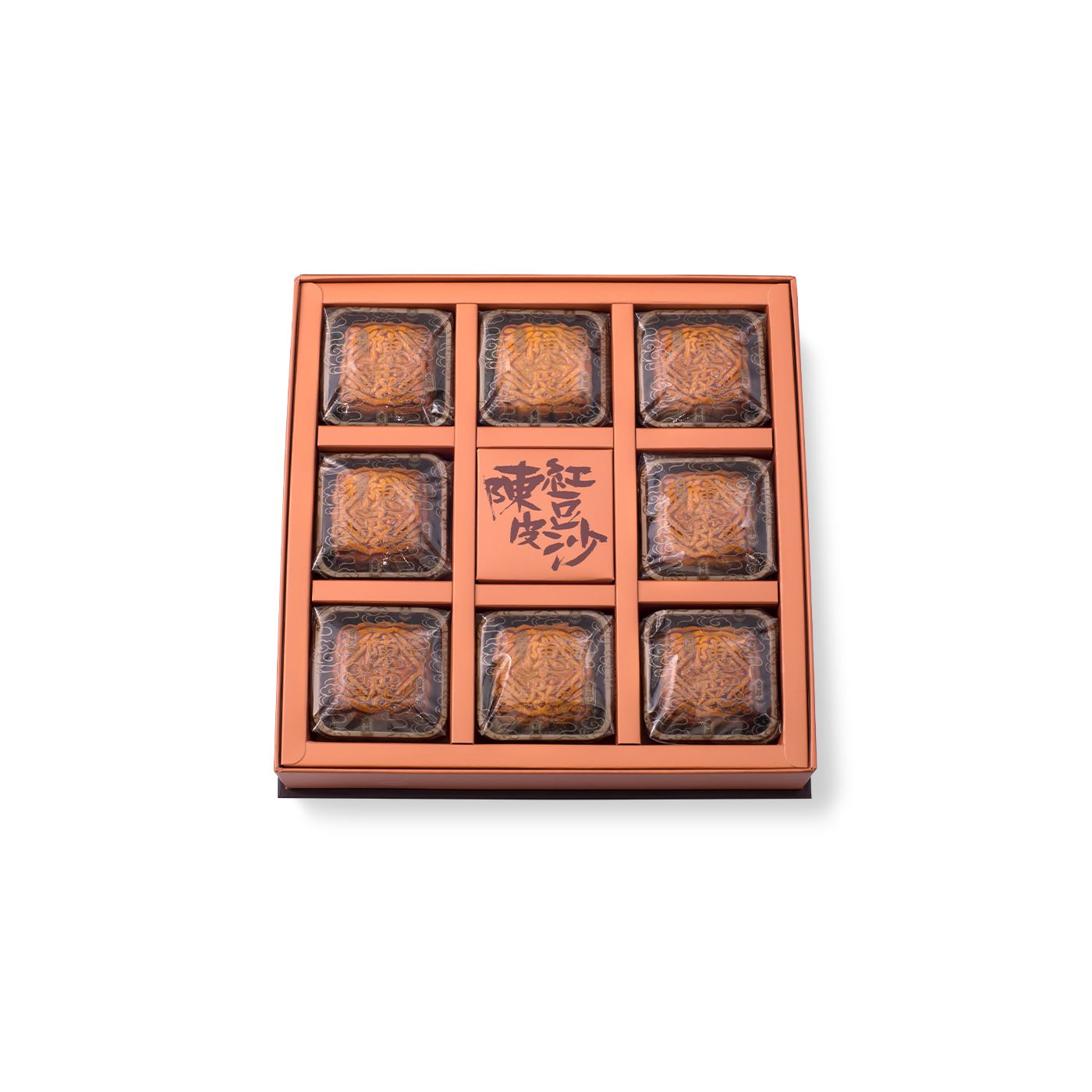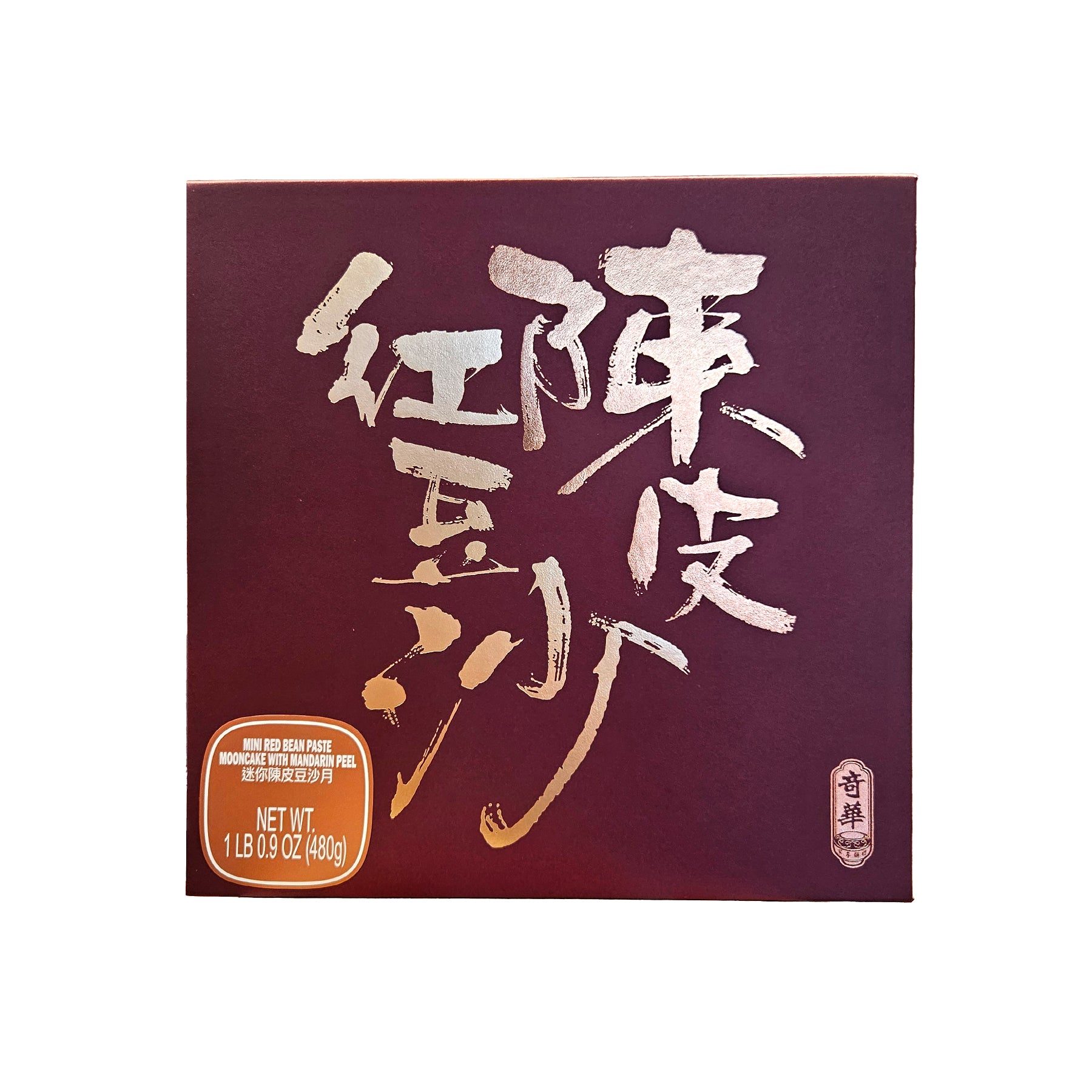 This set Red Bean Paste w/ Mandarin Peel Mini Mooncakes has a complex texture and taste that dances between the sweet taste of Red Bean and uniquely subtle taste of Mandarin Peel .