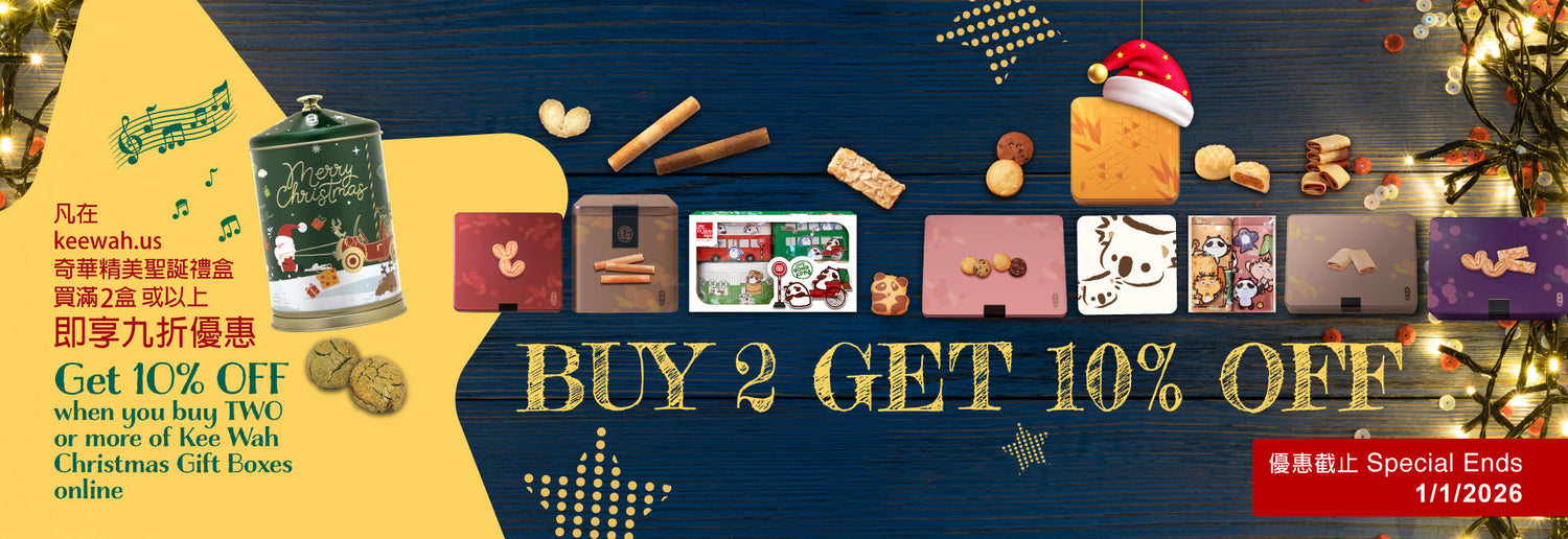 Get 10% OFF when you buy TWO or more of Kee Wah Christmas Gift Boxes!