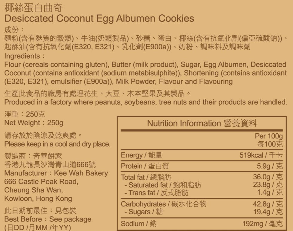 ![[HK] Desiccated Coconut Egg Albumen Cookies 250g 椰絲蛋白曲奇 250克(袋裝)](http://keewah.us/cdn/shop/files/ziplock_cocnut_albumen_cookies_label.jpg?v=1716444147&width=1445)