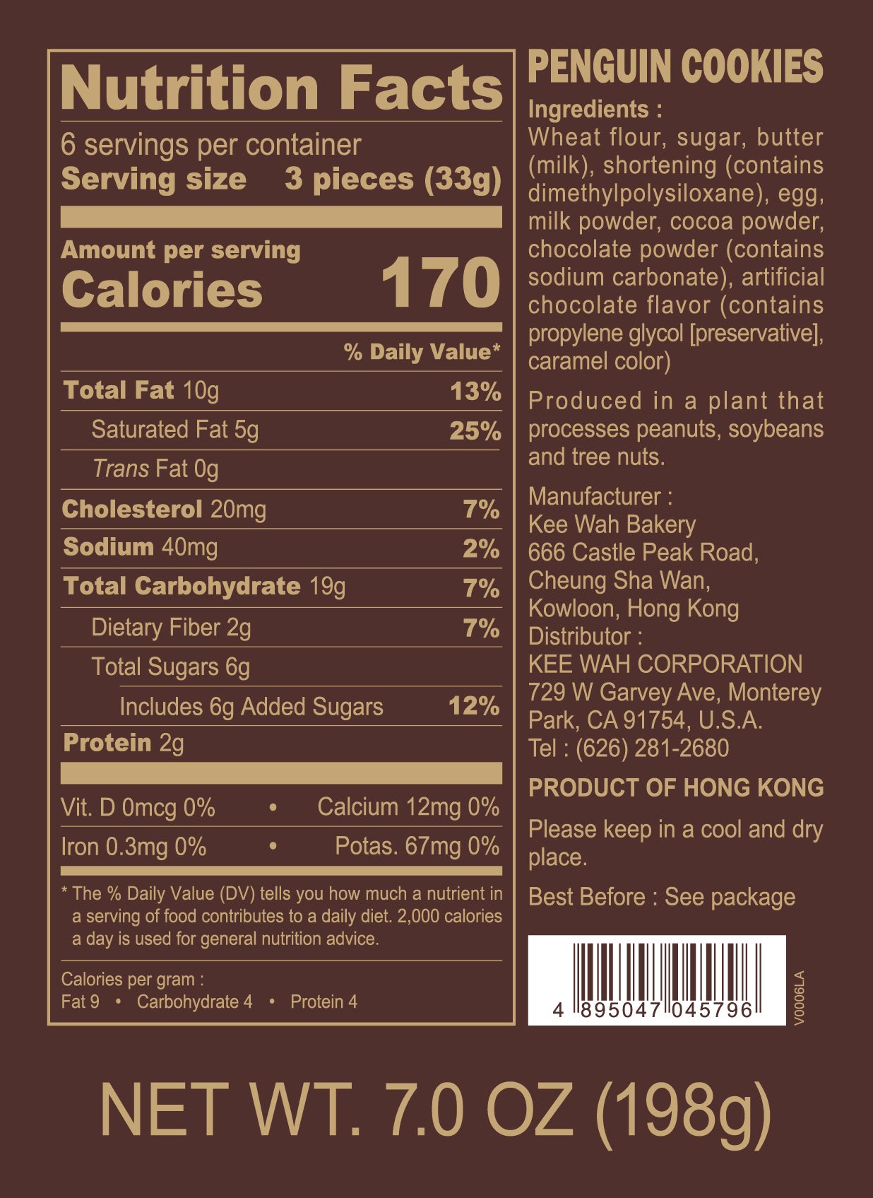 18 pieces individually wrapped Penguin shaped cookies, mixed of butter and chocolate flavor