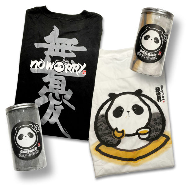 [NEW exclusive] Panda Cotton T-Shirt – “No Worry” (Black)